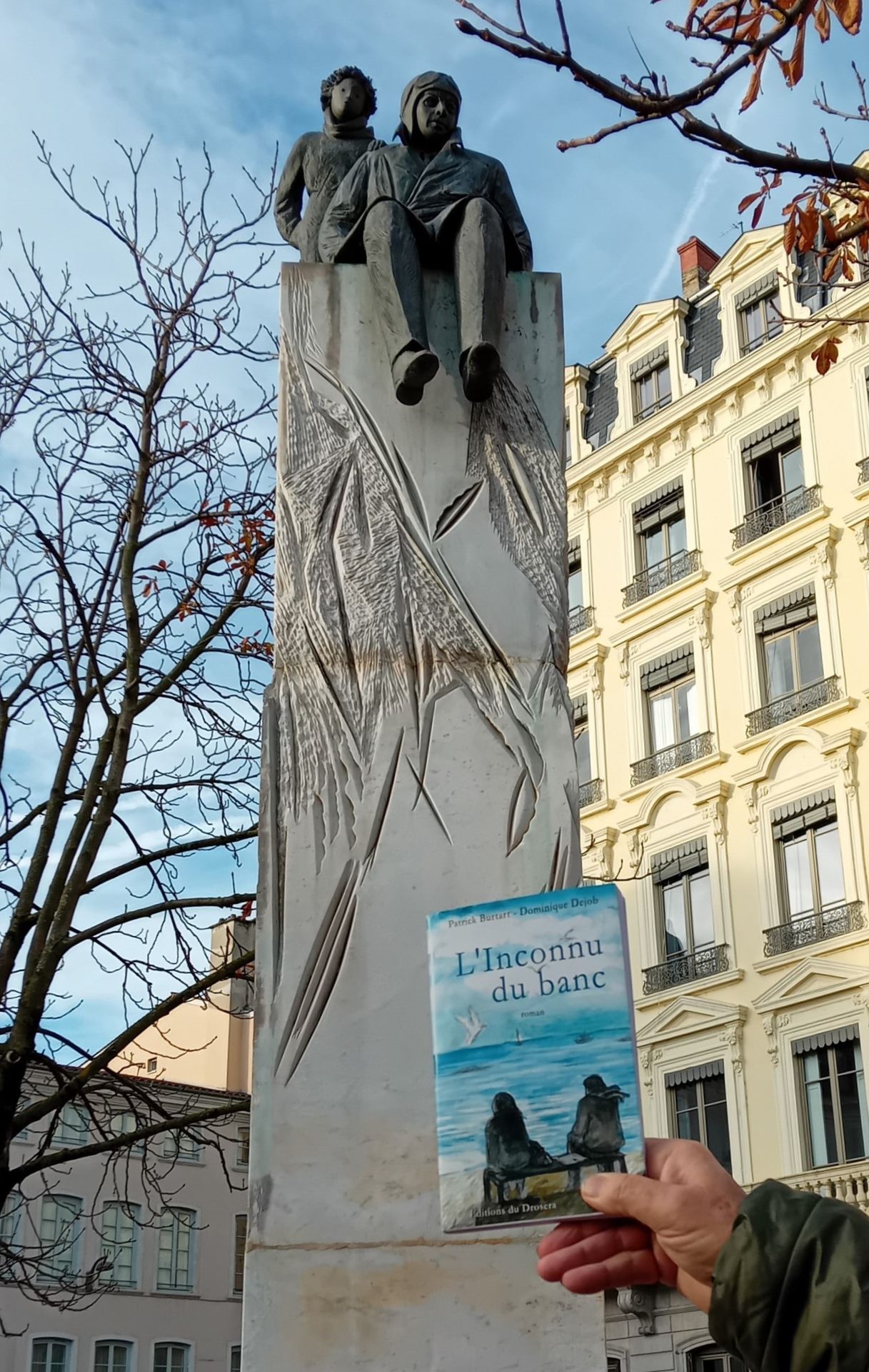 J'ai acheté vos deux livres l'été dernier au Col du Beal lors de le fête des myrtilles. Habitante de Lyon, vous m'aviez demandé de vous envoyer cette photo de la statue de Saint Exupéry située place Bellecour.